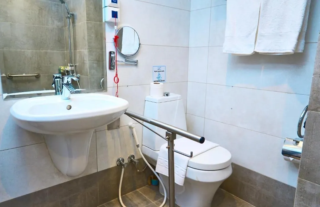 The rooms at Selat Al Bait Hotel include an iron with ironing board and an air conditioner, as well as media facilities like a flat-screen TV with satellite channels and a radio. They are appointed with a writing desk, and also feature tea and coffee making facilities. Guests will find a hairdryer and a shower cap in bathrooms fitted with a bidet, a separate toilet, and a shower.